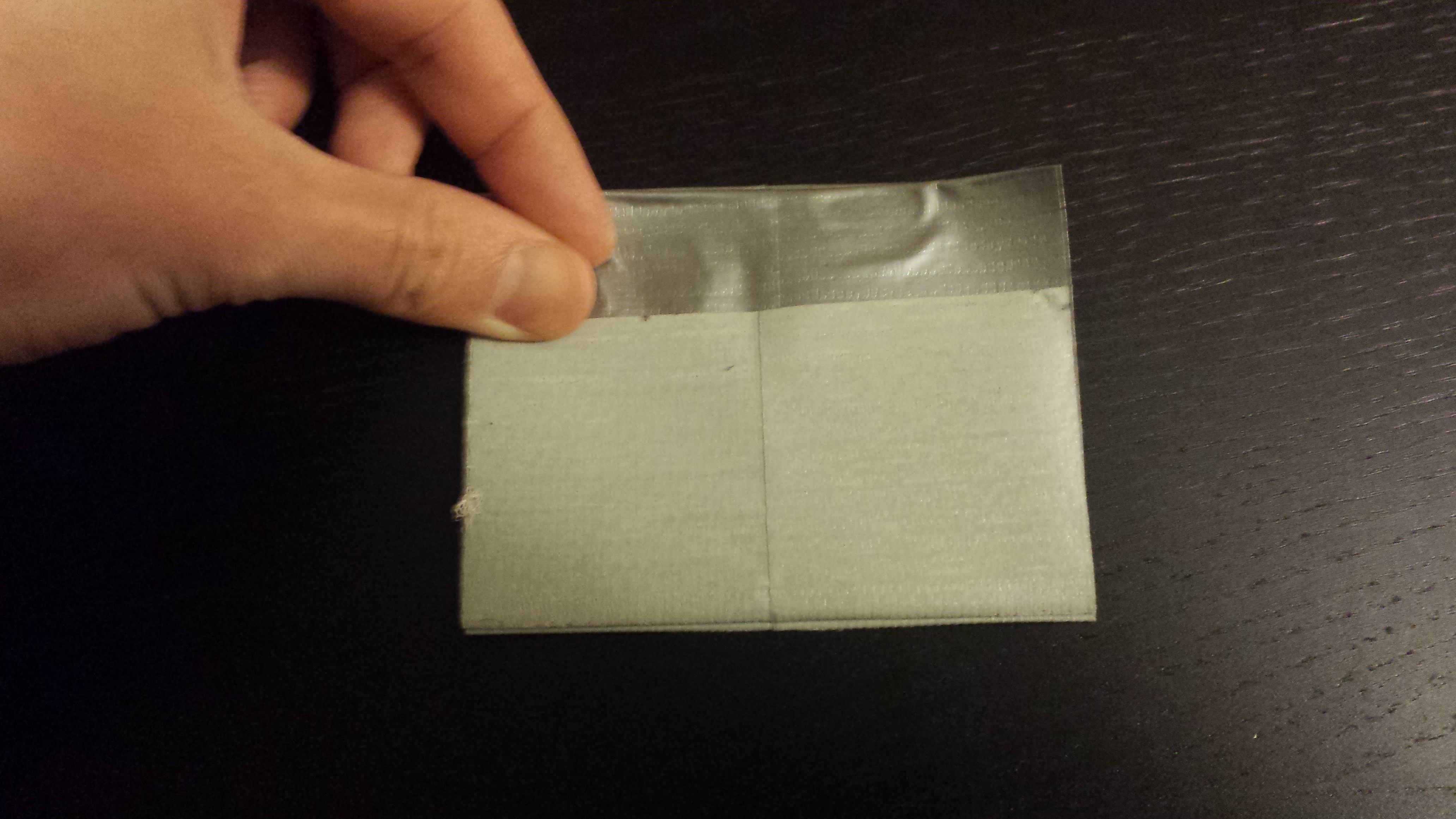 Measure out one strips of duct tape this length and lay it sticky-side-up.
