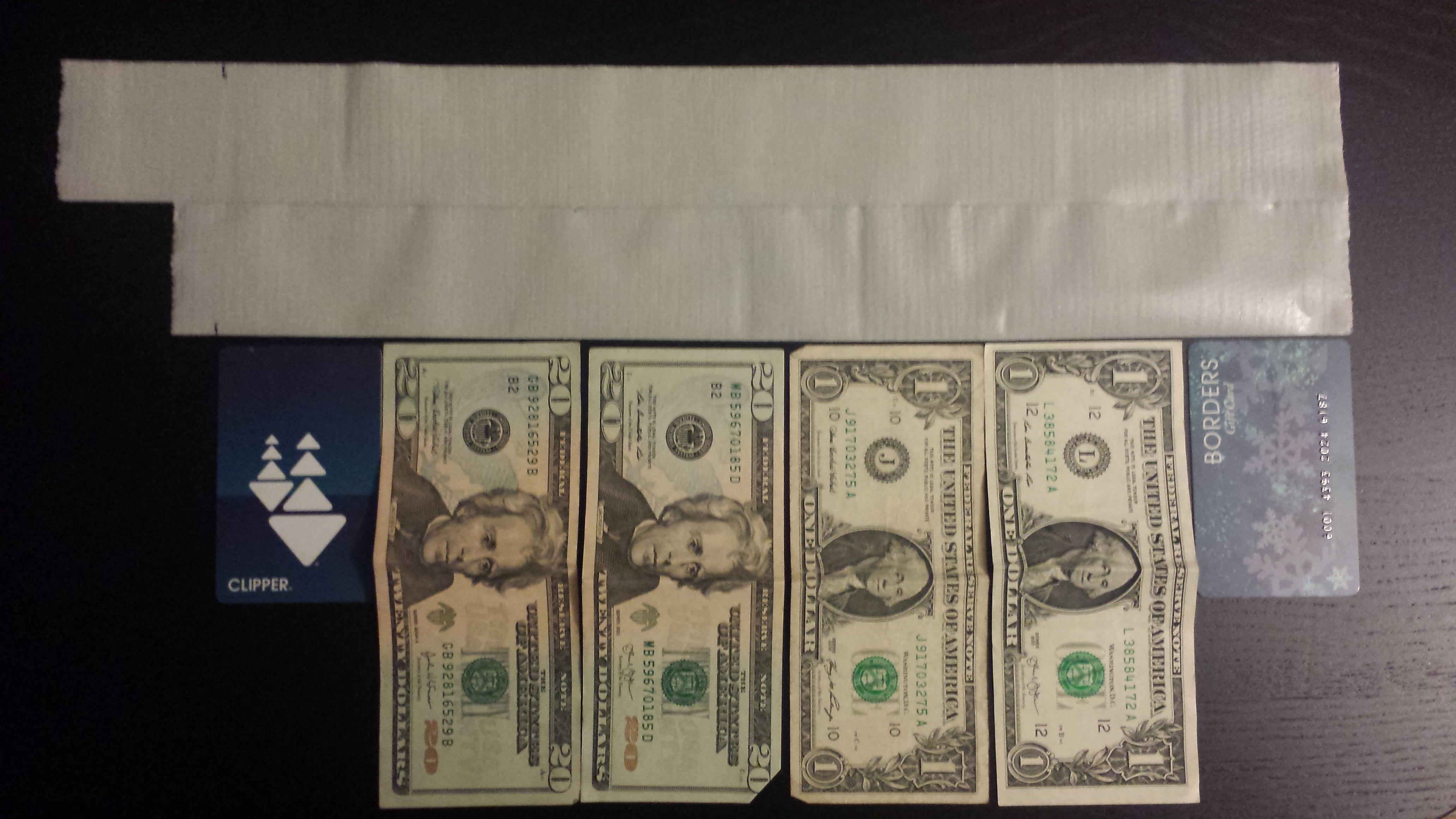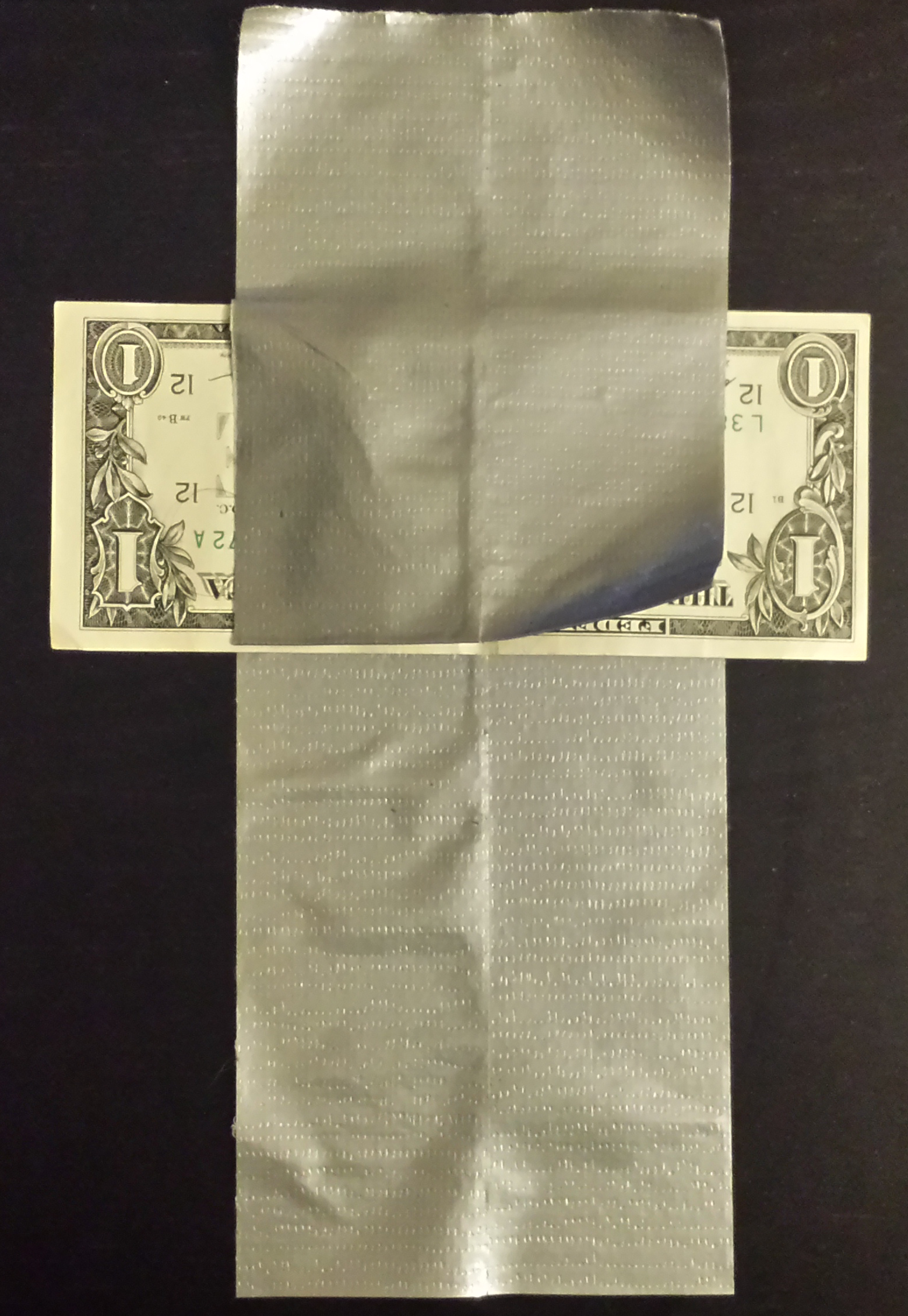 The first fold, in half, with a bill to measure the second fold.After the second fold.