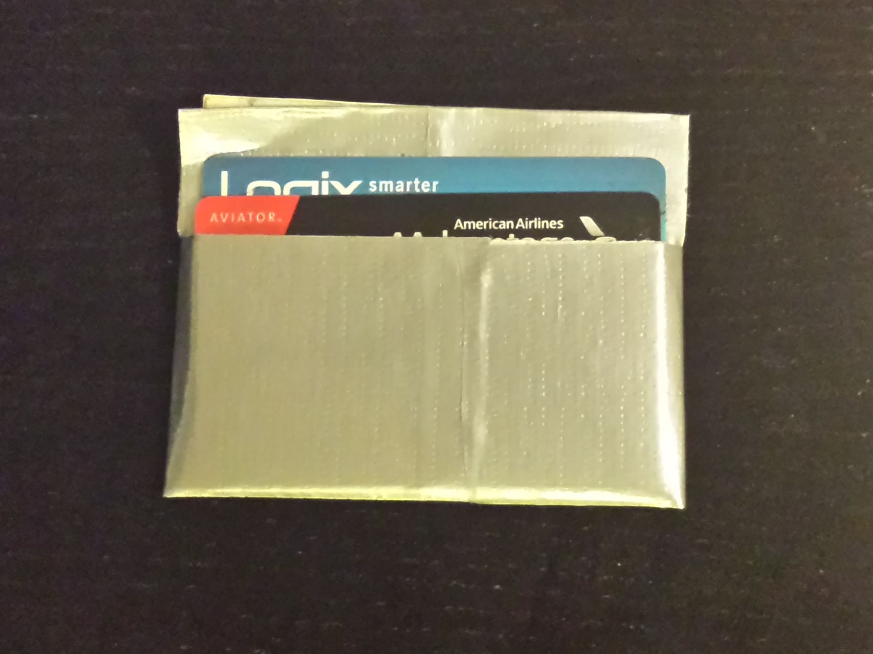 Duct Tape wallets are cool, thin and light, and personalizable. The instructions below describe my design, which I think is elegant, and you can modify to your heart’s content.